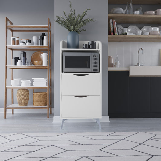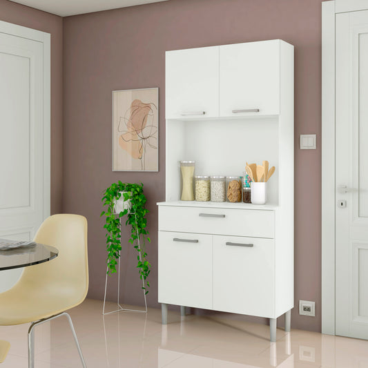 Armario alacena con cajones y hueco para microondas (Alto 136 / Ancho 60 / Fondo 36) en color Blanco