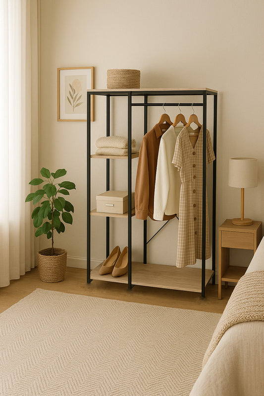 Armario Abierto Estilo Industrial con Barra y Baldas - 167x90x41cm