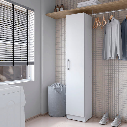 Armario escobero alto multiusos de una puerta con estantes para guardar productos de limpieza en Color Blanco
