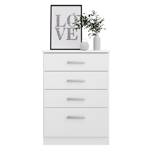 Buyqualia - Comoda para Dormitorio 4 cajones, Blanco Snow, 86x61x38