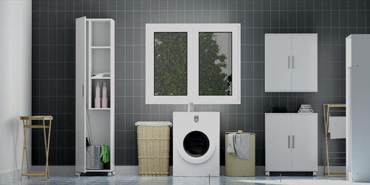 Buyqualia Armario Multiusos o escobero una Puerta y Ruedas en Color Blanco