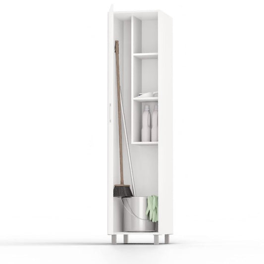 Buyqualia Armario escobero Multiusos estantes y una Puerta en Color Blanco Alto 188 / Ancho 42 / Fondo 35