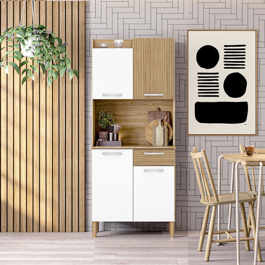 Buyqualia Armario despensa Multiusos Cocina con cajón y Cuatro Puertas de Gran Capacidad en Color Blanco Alto 188 / Ancho 82 / Fondo 35