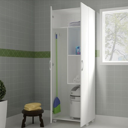 Buyqualia Armario escobero Multiusos Dos Puertas, Ruedas, Color Blanco (alto 183 / ancho 72 / fondo 41) cm