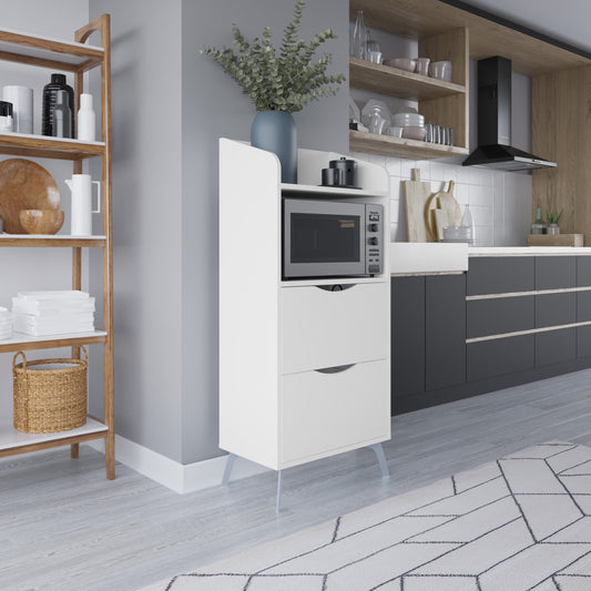 Buyqualia Mueble alacena con cajones y Hueco para microondas Armario bajo Cocina (Alto 136 / Ancho 60 / Fondo 36) en Color Blanco