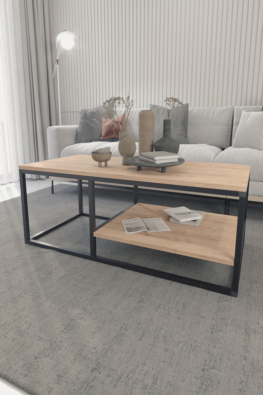Buyqualia Mesa de Centro Rectangular de Estilo Industrial con revistero en melamina y Acero Color safir - Negro (Alto 42 / Ancho 105 / Fondo 50)