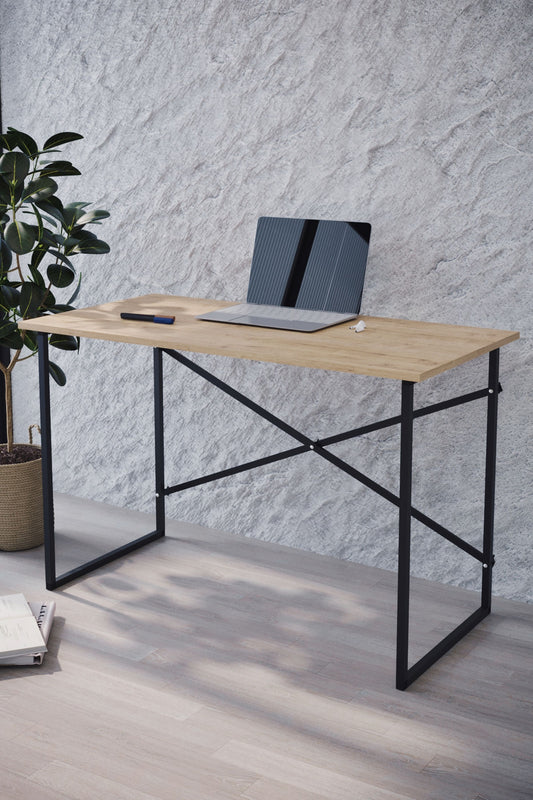 Buyqualia Mesa Escritorio para despacho u Oficina en casa de Estilo Industrial con Estructura de Acero (Ancho 90 cm)