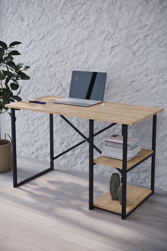 Buyqualia Mesa Escritorio Cajón con Cerradura y Estante en Color Blanco y Roble