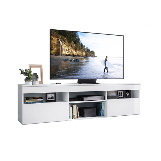 Buyqualia Moderno Mueble para TV Blanco Snow, con Espacios Abiertos y Cerrados, 4 Huecos y 2 Puertas