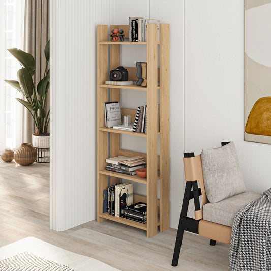 Buyqualia Mueble librería con estantes con Fondo reducido para Espacios pequeños en Color Roble (Alto 155 / Ancho 57 / Fondo 25) (Safir)