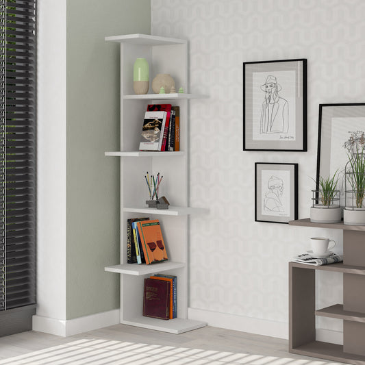 Buyqualia Mueble librería para Esquina con estantes (Alto 141 / Ancho 37 / Fondo 24) en Color (Blanco)
