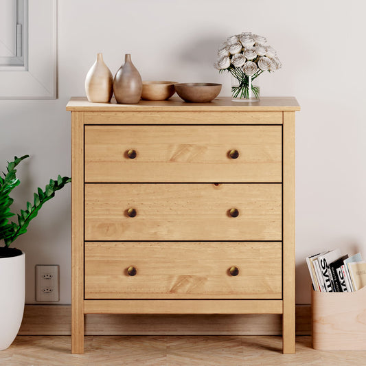 Comoda 3 Cajones Magda - Madera Maciza - Miel Roble - 81x76x40cm - Buyqualia